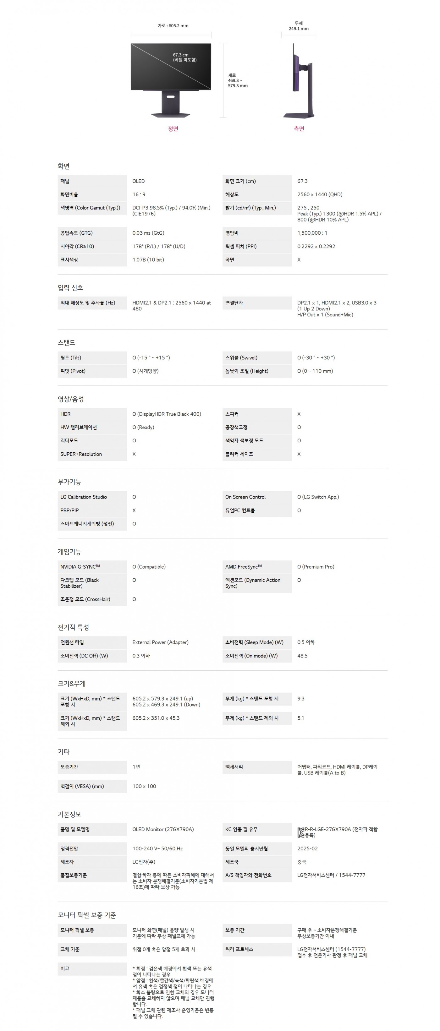 최대 480Hz 주사율과 0.03ms대(GtG) 응답속도DP 2.1, HDMI 2.1 지원QHD 해상도의 올레드 디스플레이눈이 편안한 게이밍모니터